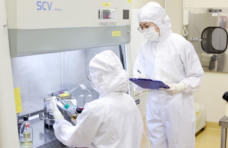 J-TECは、経験豊かな人材とGCTP準拠の生産設備・培養機器・検査機器を備えています。その強みを活かし、開発から市販後対応までトータルかつシームレスに支援します。さらに臨床現場の声を開発に還元することで、多くのお客さまに選ばれています。